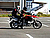 続いてリアブレーキのみ、フロントブレーキのみの制動、前後ブレーキでの急制動を体感し、それぞれの制動距離(ブレーキ力)の違いを確認します。また速度を上げた場合、2人乗りやウェット路面でのそれぞれの違いを体感、確認します。