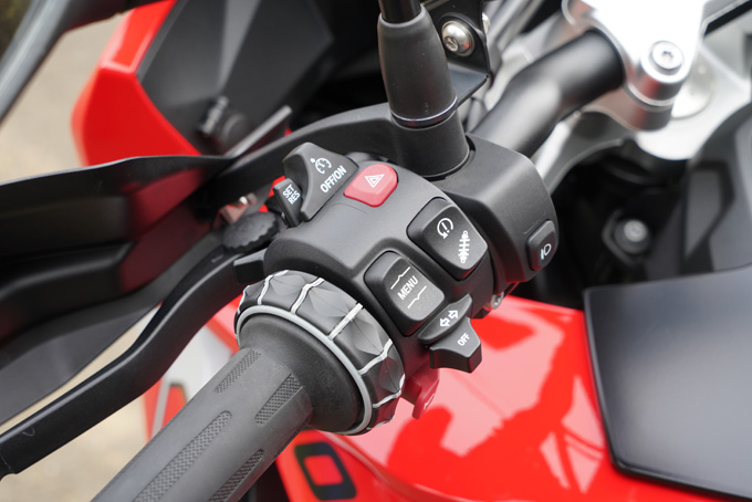 ステップ位置は従来モデルと比べて20mm前方へとセットされた。ギアシフトアシスタントプロも装備しており、クラッチ操作をせずにシフトアップ/ダウンを行うことができる。
