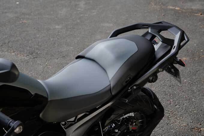 シートは標準仕様が850mm、ローシート820mm、ハイシート870mmが用意されている。アダプティブ車高制御機能が備わっているモデルでは停車時に30mm下がる。日本仕様はライダー、パッセンジャーどちらにもシートヒーターが内蔵される。なおパッセンジャーシートは前後2か所に位置の調節ができる。