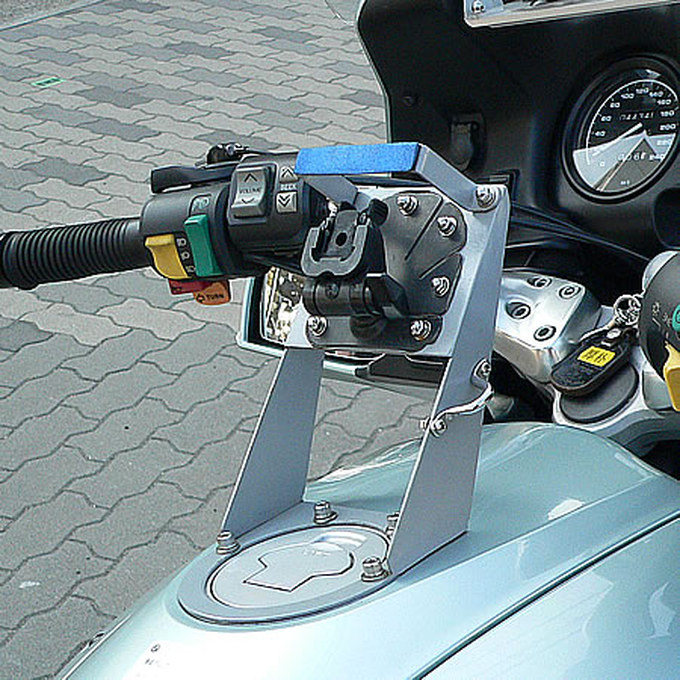 「カーナビを付けるために自分でパーツを造りました。錆や変形がイヤだったので、ステンレスで造ったのですが、これが堅くてね。苦労しましたよ。それでも寸法から、角度など完全にこのバイク専用で私専用。市販されているものもいいかもしれませんが、やはり自分が造ったものは使い勝手もいいし、愛着もあります。ここは自慢ですね」