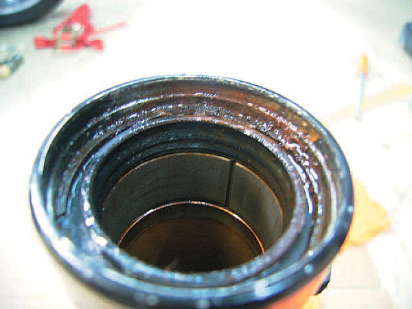 侵入した水でオイルシールを留めるスナップリングが錆び、錆の粉がオイルシールやインナーチューブを傷つけることがある。オイル漏れの原因。