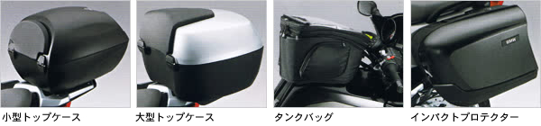K1200GTは標準でパニアケースを装備しているため、そのままでもロングツーリングに旅立てるほどですが、さらに快適性を高めるオプション装備も用意されています。万が一の転倒の際にパニアケースを損傷から守るインパクトプロテクターや大小2種類のトップケース、タンクバッグなどを取り付ければ、GTの持つ魅力や機能性をグッと広げてくれることでしょう。タンクバッグと大型トップケースを組み合わせて使用すれば、ただでさえ収納性の高いGTに、さらに82Lもの収納性を増やすことができます。たとえタンデムでの長距離の旅行であっても、収納に困ることはなくなるでしょう。