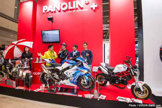 21ここからはBMWブース以外で見かけたBMWを紹介していこう。こちらはスイスが本社の高性能オイルブランド、PANOLIN(パノリン)のブース。壇上では、Motorrad 39からJSBと8耐に参戦する酒井大作選手(左から2番目)らがトークショーを開催しており、多くのファンが詰め掛けた。